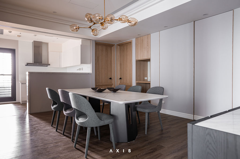 流暢動線貫串客廳、書房及餐廚空間,區域相隔卻具整體連貫性,釐清空間分野。