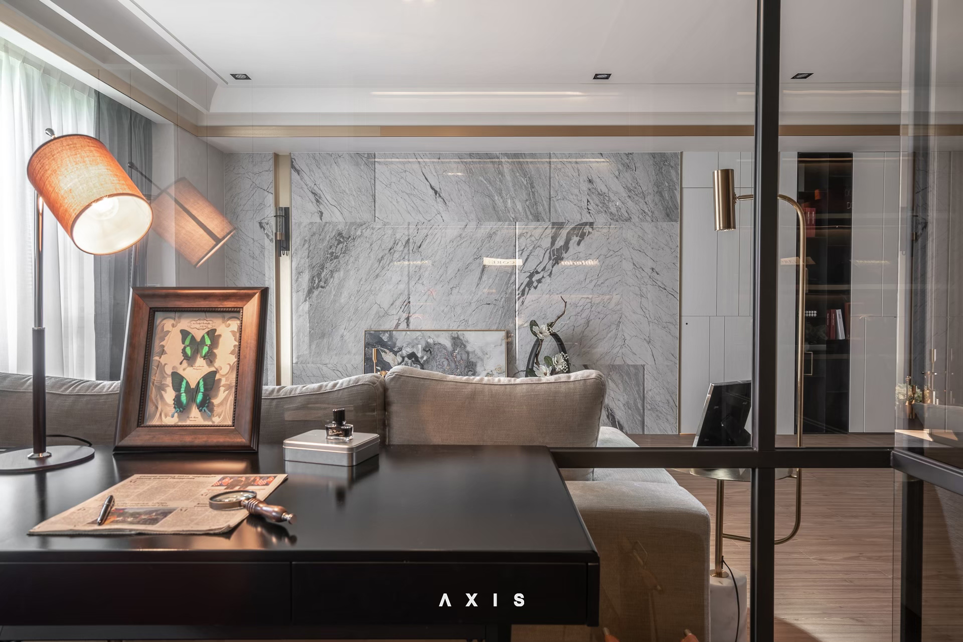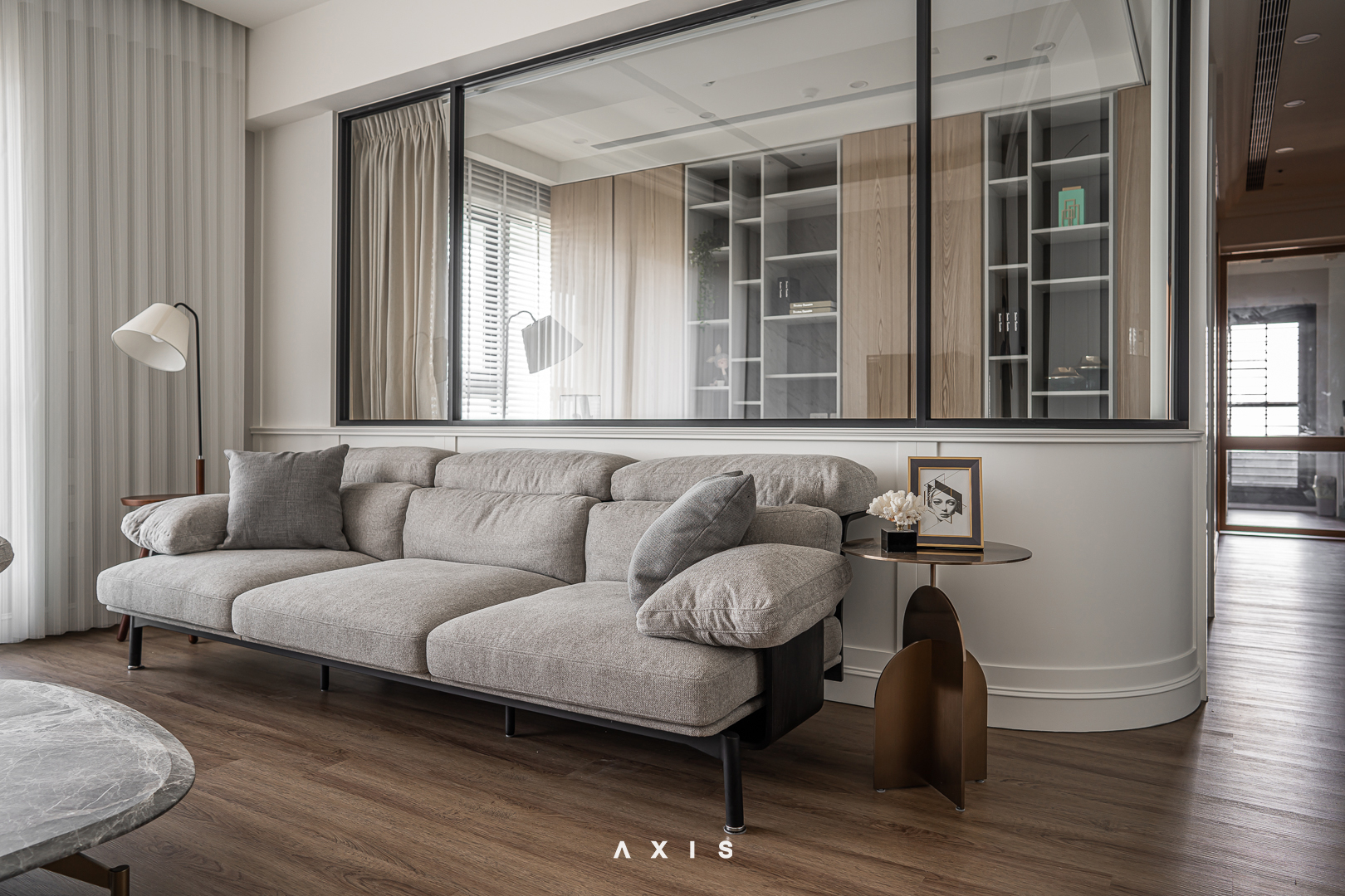 喜歡明亮、寬敞的空間設計,但又擔心太過於開放會無法全心投入閱讀或工作中,那就運用穿透效果良好的玻璃材質作為書房的隔間吧!從客廳切割出閱讀空間,在區隔場域的同時,既保持通透視覺、採光也能自由穿透,也保留整體空間開闊、流暢的動線效果。
