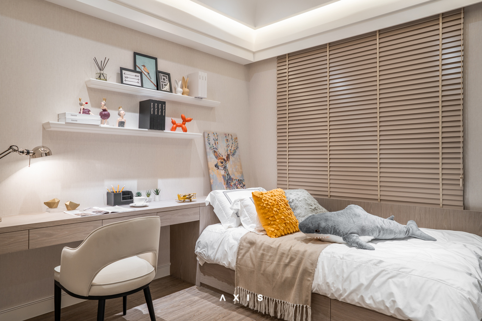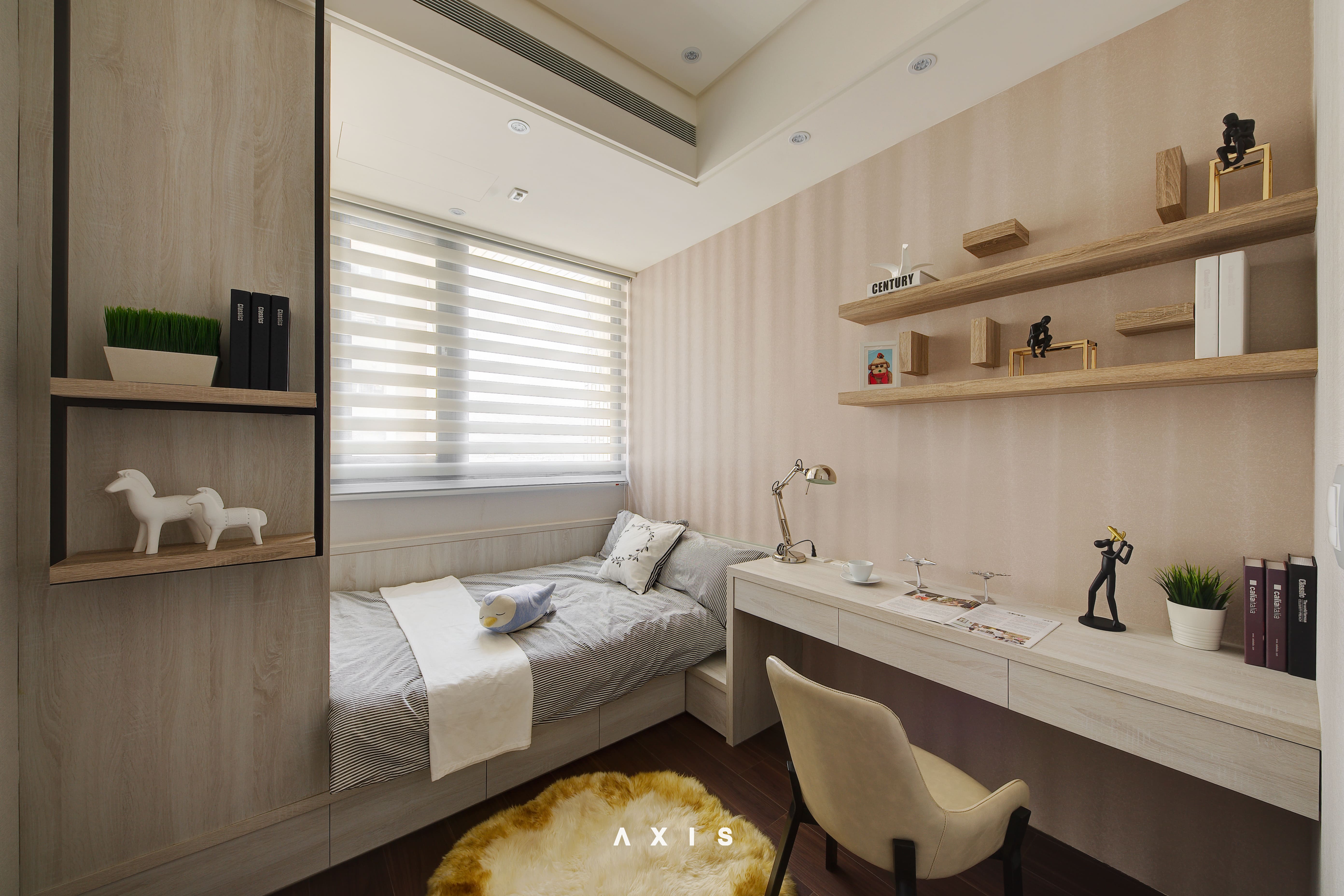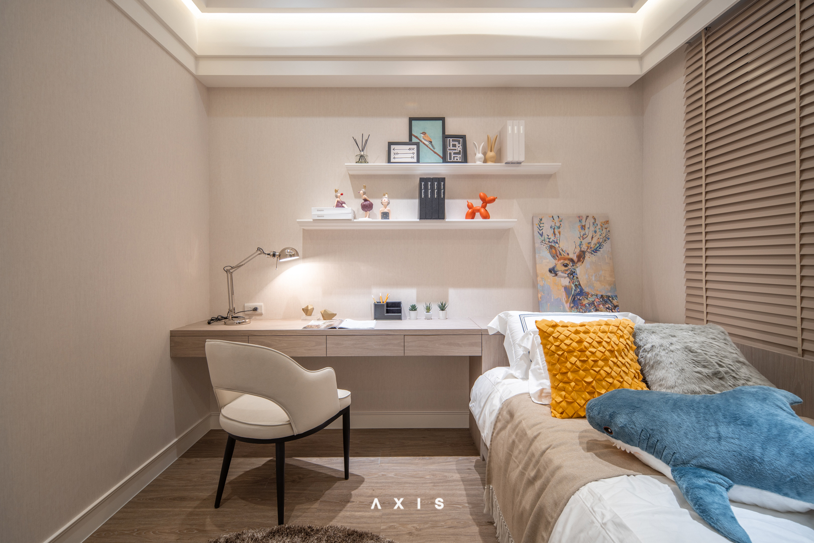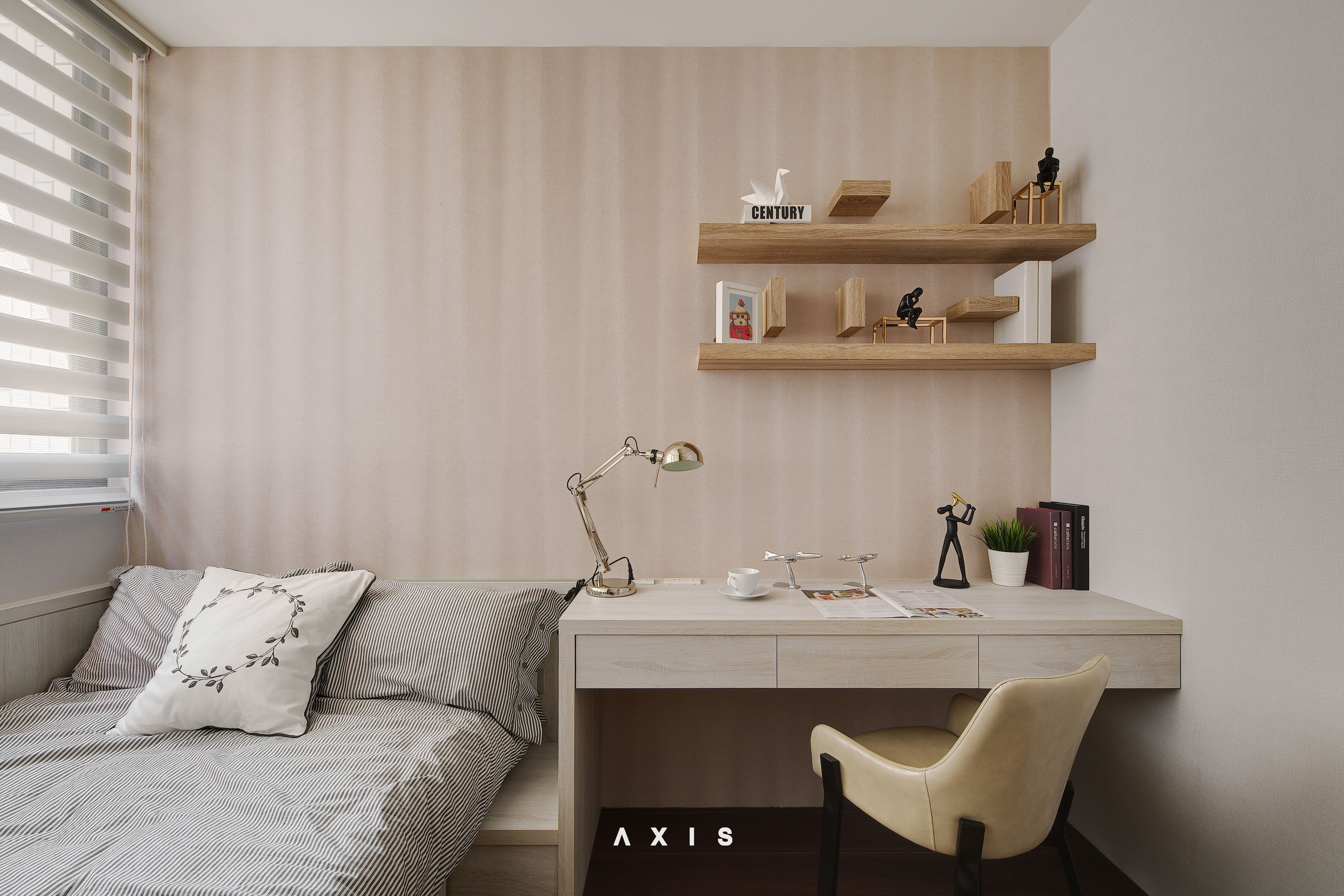 若居住空間坪數有限,又想擁有一個閱讀的空間,其實可以與臥室做整合規劃。臥室中的小書桌,從倚靠在窗邊的臥榻延伸上來,完整地運用了臥房中側邊一角的零碎空間。