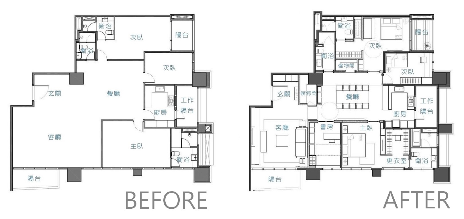 在溝通的過程中發生了一件很有趣的事。因為對期待許久的居所充滿興奮,我們一開始就和設計師討論每個房間的配色及風格,但設計師提醒我們必須先回歸到平面配置,弄清楚每個房間格局的基本需求再往下走,流程才會順利。於是我們按照設計師的想法開始溝通,許多不同的意見皆一一得到解決,讓為期數月的裝潢工程進展得很順利。