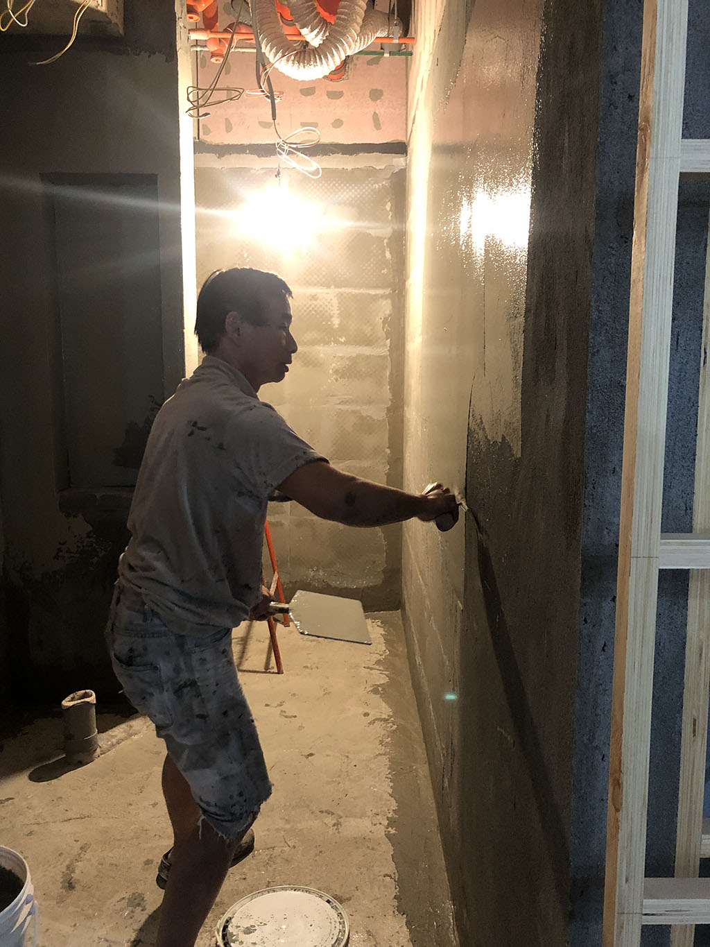 師傅在塗面漆前要先上底漆,才能夠填補牆面的細小裂縫,讓漆面更加細緻。
