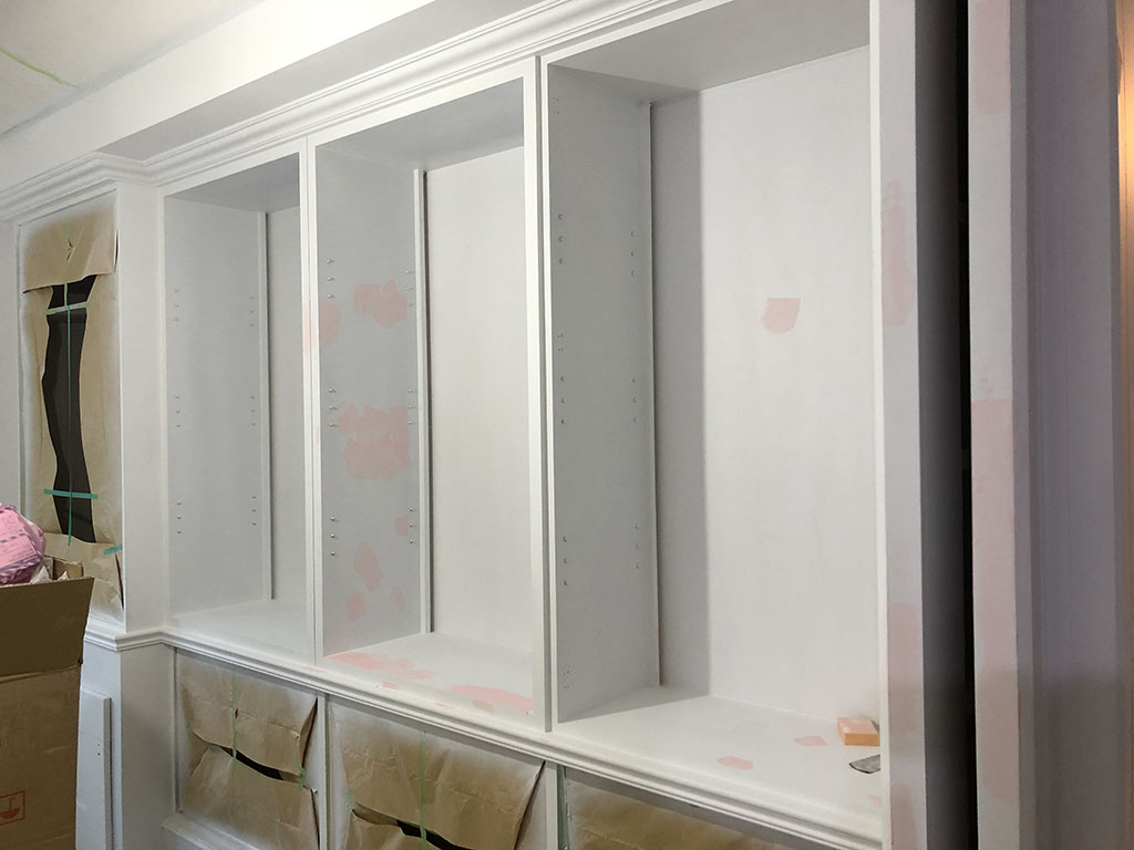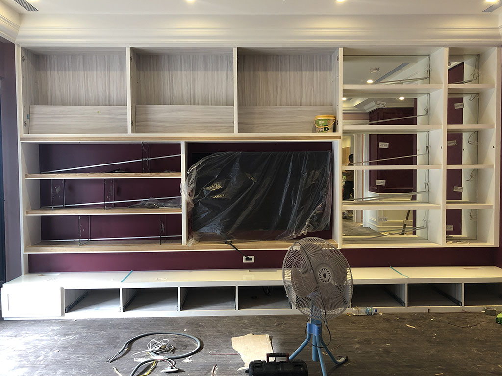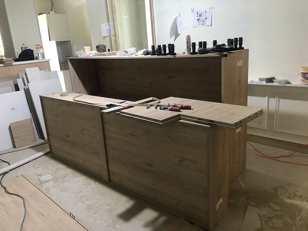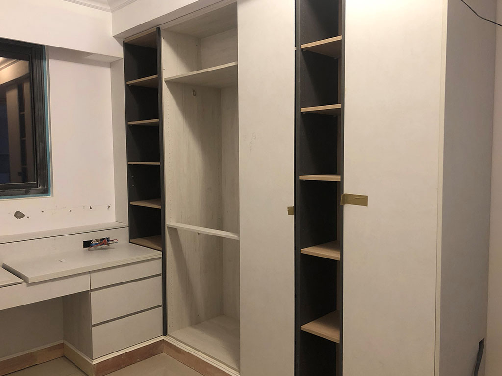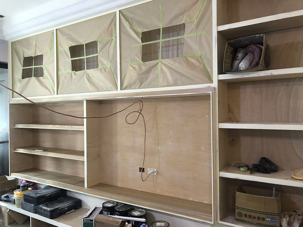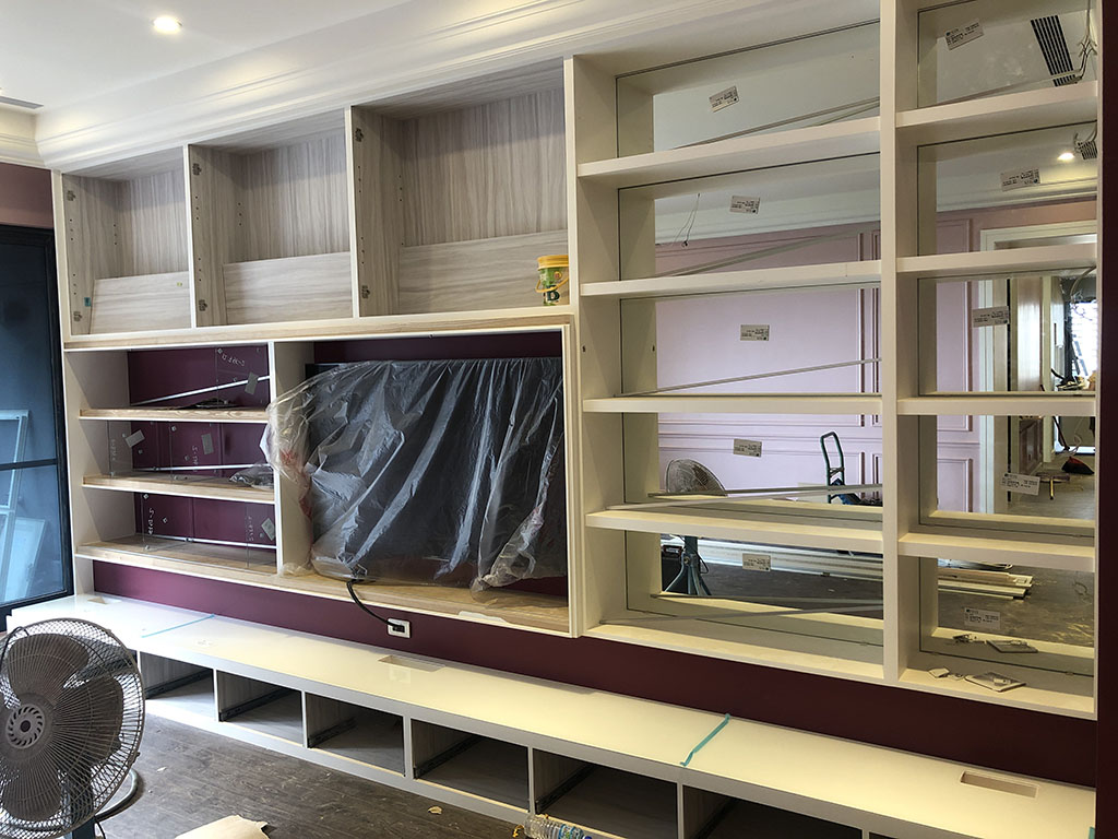 這是系統櫃組裝的過程,原本全是一塊一塊的系統板材,師傅用專業技術組裝成漂亮的櫃體。