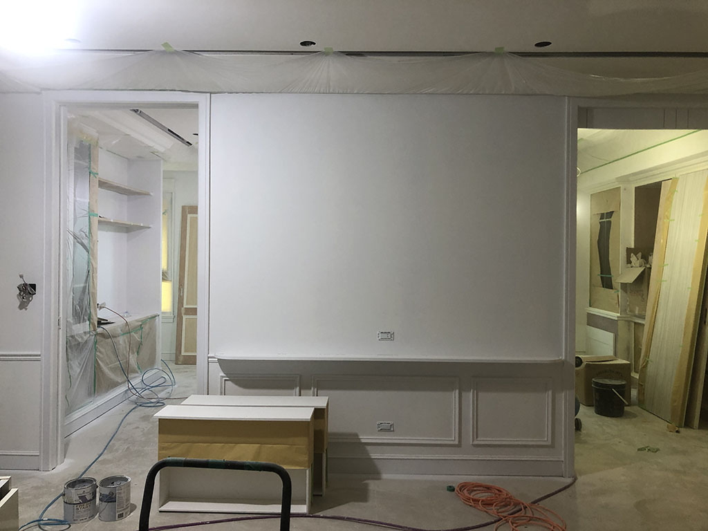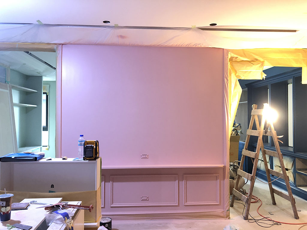 再來是油漆工程,左圖照片中的牆面已經上了底漆,右圖則是塗上面漆後的樣子。