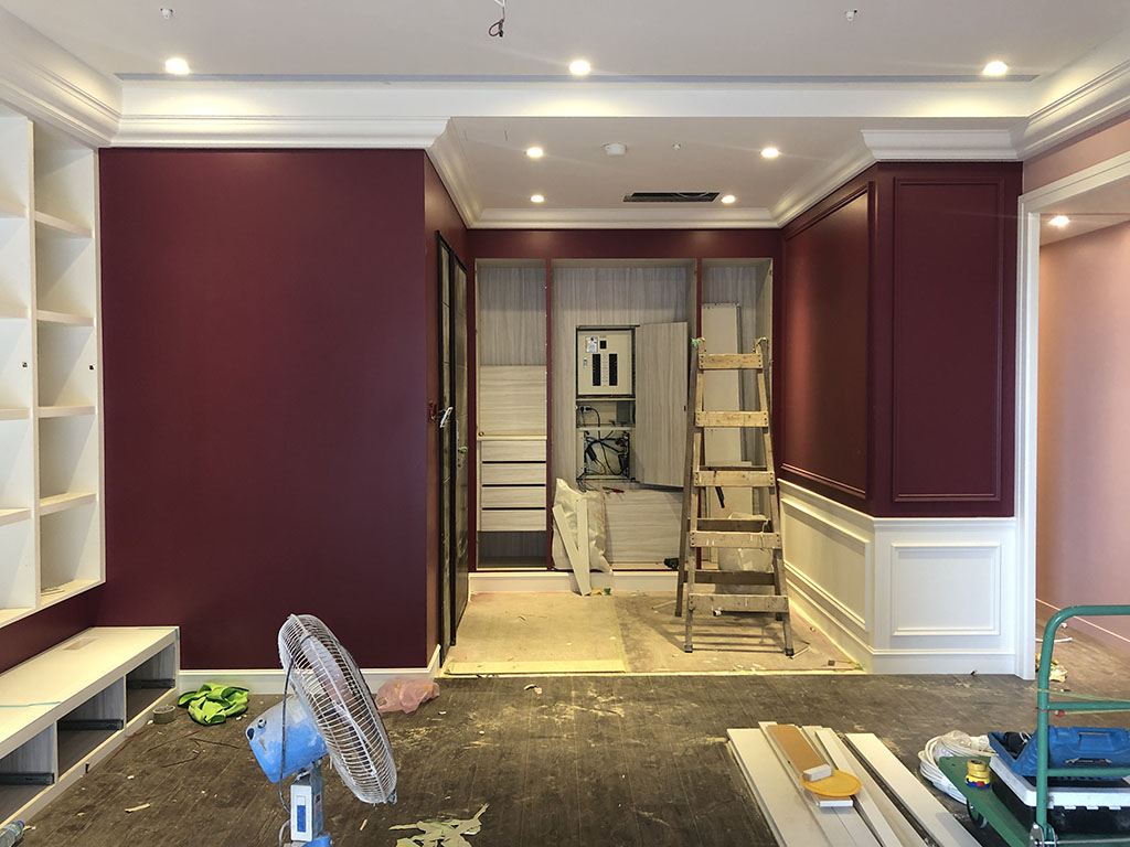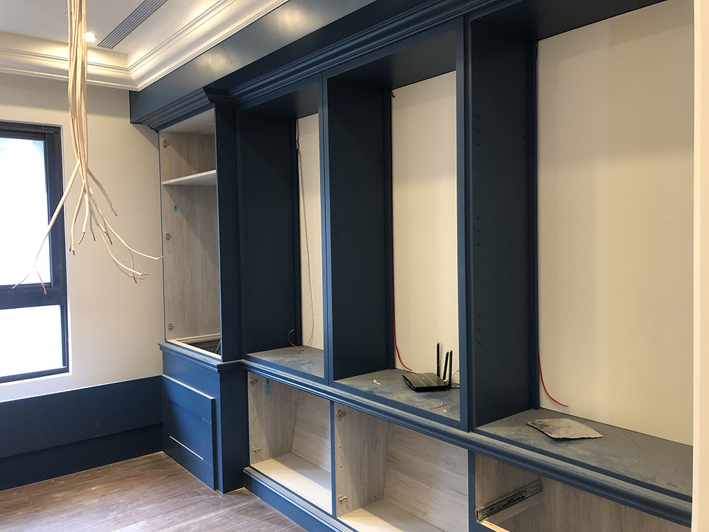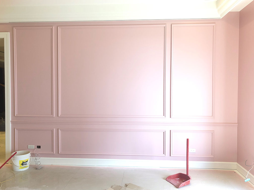 整體來說,我們家的木工和油漆非常費工,從玄關的精細線板到家中每一面牆的細緻漆面,都需要有非常專業的工法,結果也令我們非常滿意。