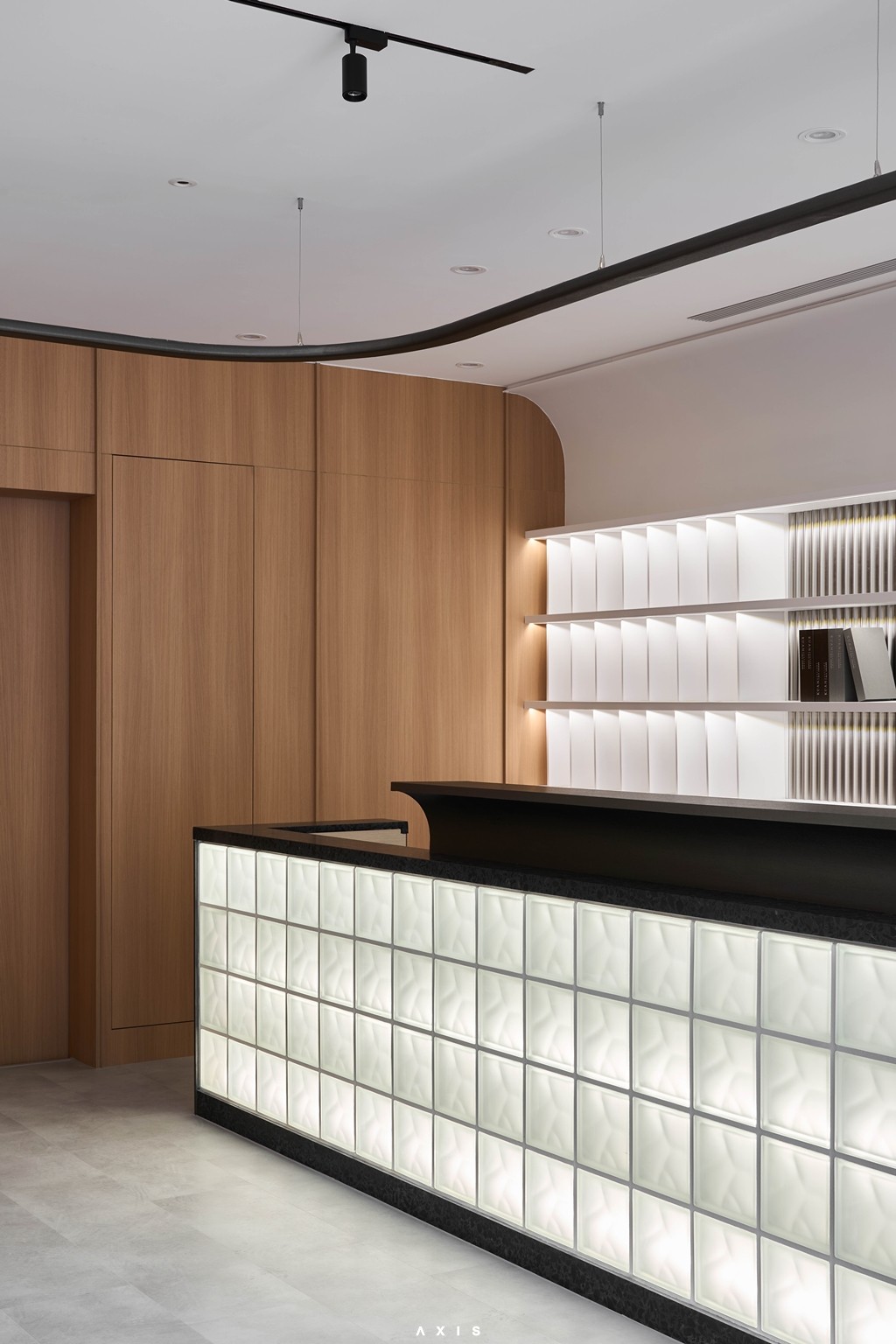台中-太和3-接待中心 首頁 作品介紹 COMMERCIAL | 商業空間 台中-太和3-接待中心 本案房產銷售中心規劃 考量產品特性和定位 臨路建築正立面以紗簾帷幕為特色 巧妙引入自然光線 為室內增添了一絲柔和的光暈 大量運用玻璃磚元素 創造連續面造型與分區介質 在燈光的烘托下更顯輕盈與美感 溫潤的木質調貫穿全室 使空間顯自然溫馨悠閒 搭配純白色系營造出清新感 呈現出溫煦柔和氛圍 顯得更加開闊明亮 中段以矮牆區隔作為洽談區 多處連續面造型引領不同視角 多向回字動線流動性極佳 劃分場域兼具轉折與搭配俐落燈飾造型增添高闊感 滿足必要的隱私與通透之間的完美平衡